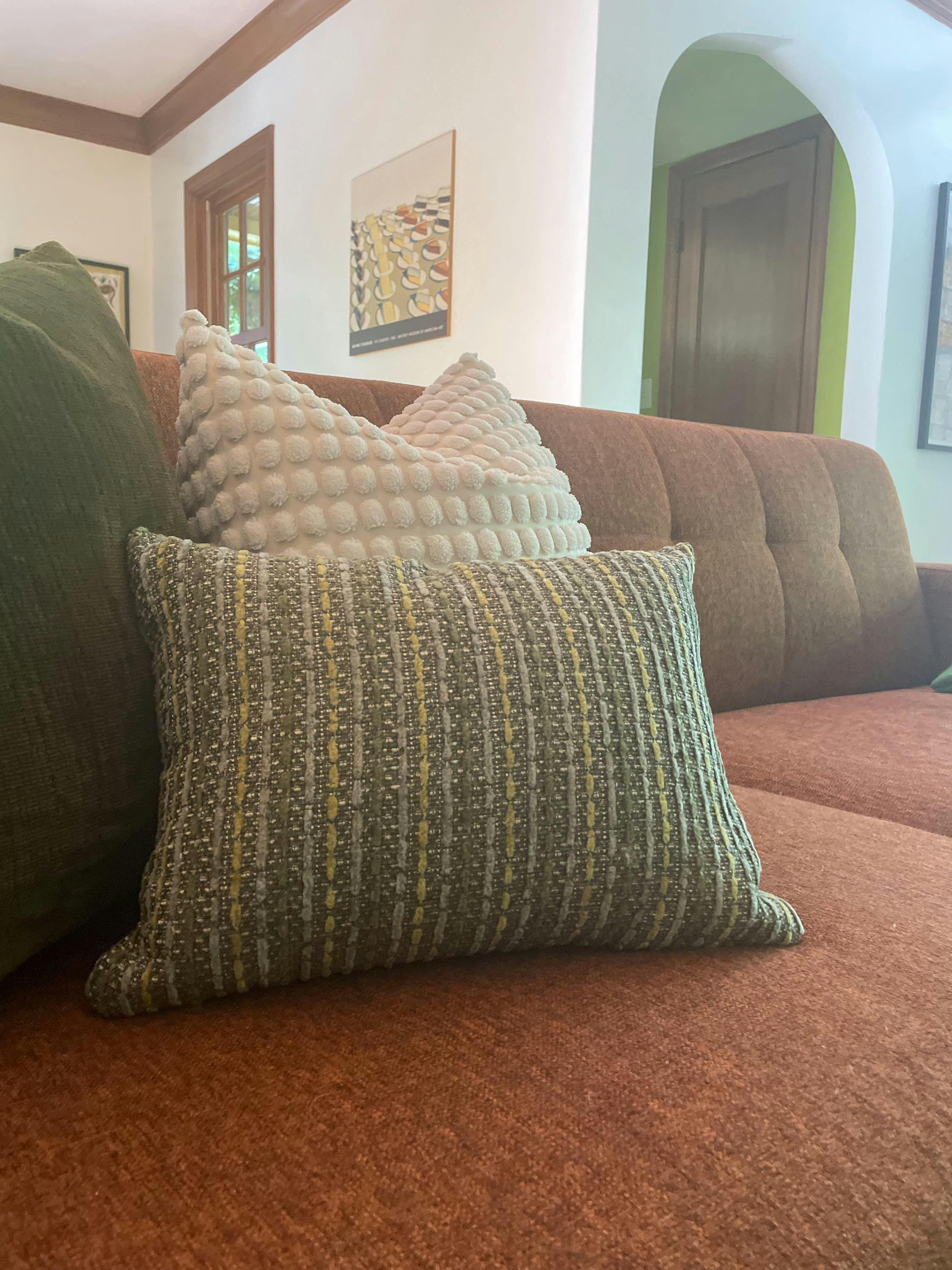 ✨ Blending earthy tones with a relaxed aesthetic, this pillow cover features striped detailing in green and moss green that adds subtle dimension and visual rhythm.
