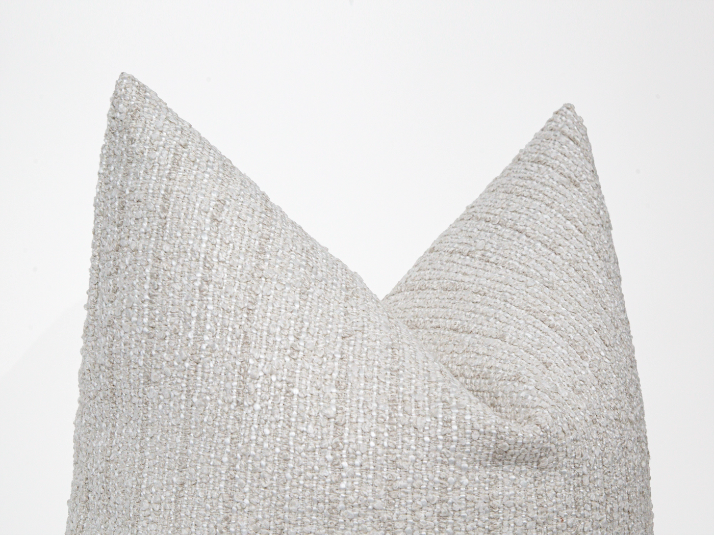 An ivory boucle pillow cover with subtle linear texture for refined minimal styling.