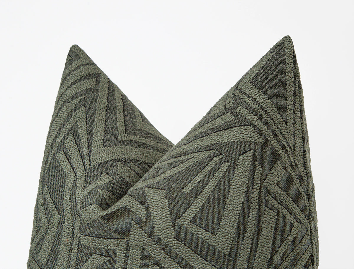 ✨ Part of our District Collection, this green arch geo pillow cover features an architectural boucle pattern that adds sculptural depth and modern character to any space.