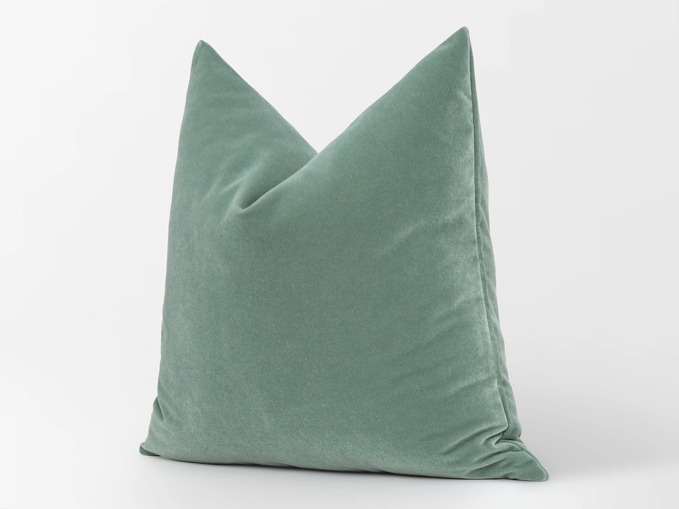 Aqua green velvet pillow with sleek, soft texture—medium-thick and refreshing for coastal, playful, or bright interiors.