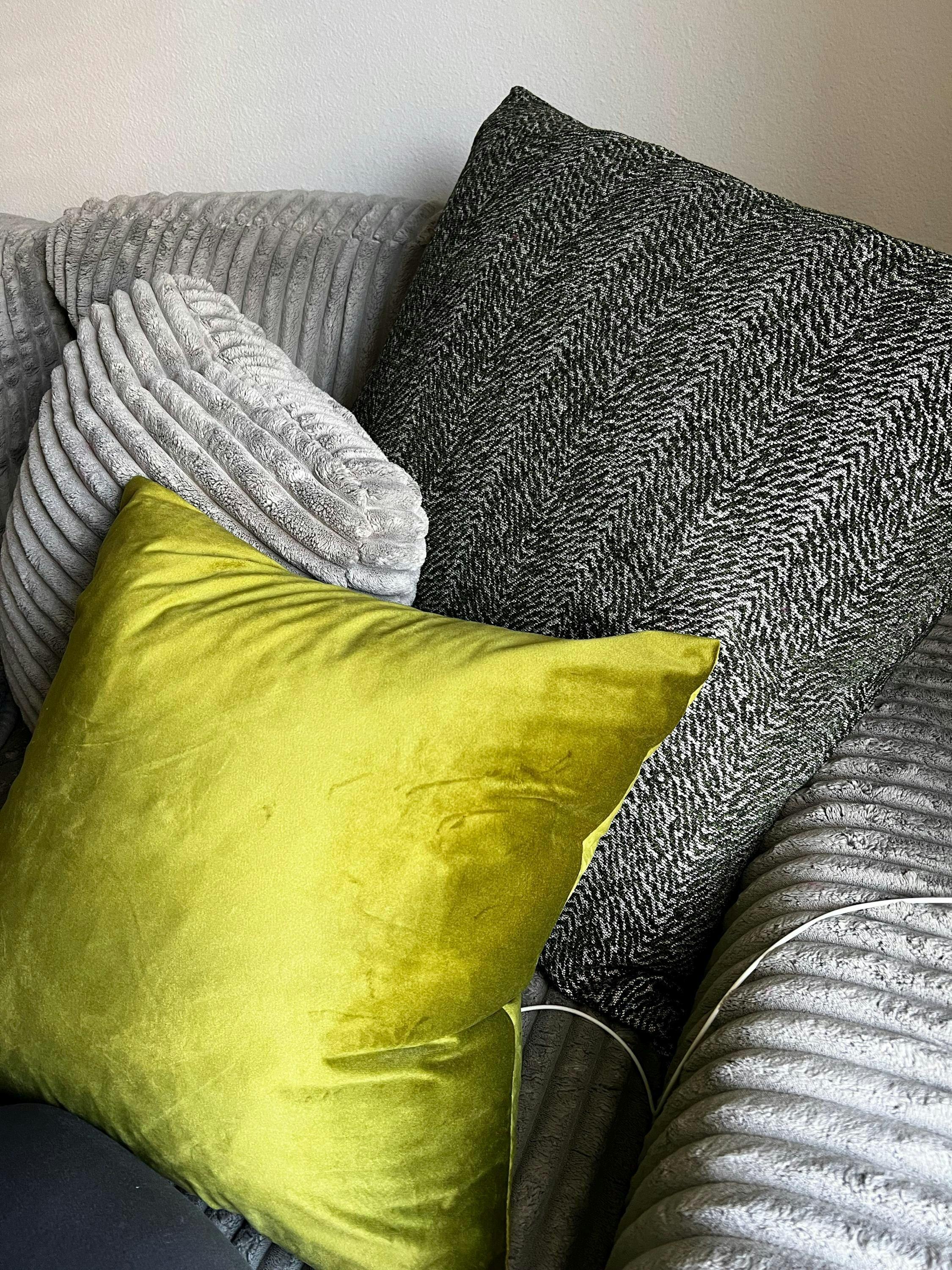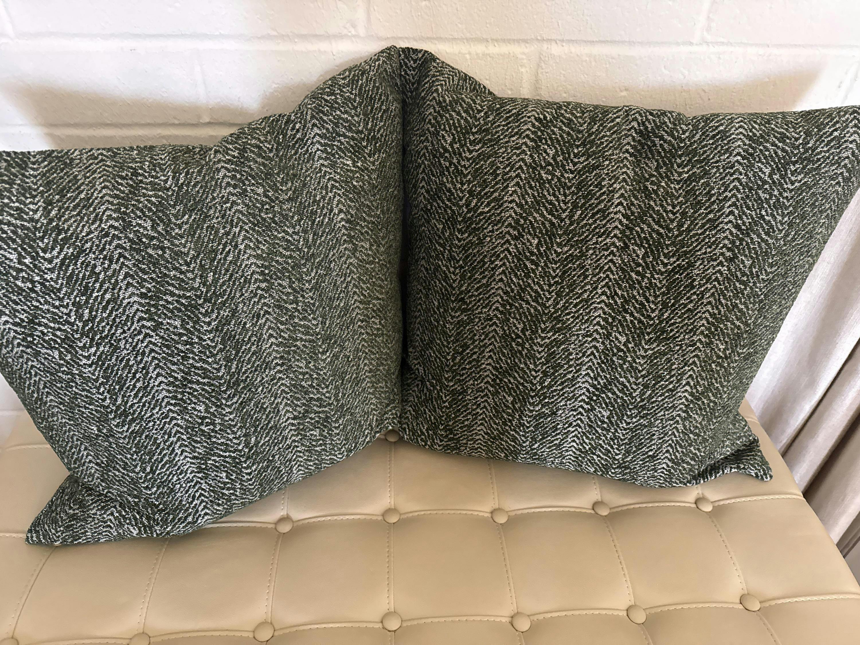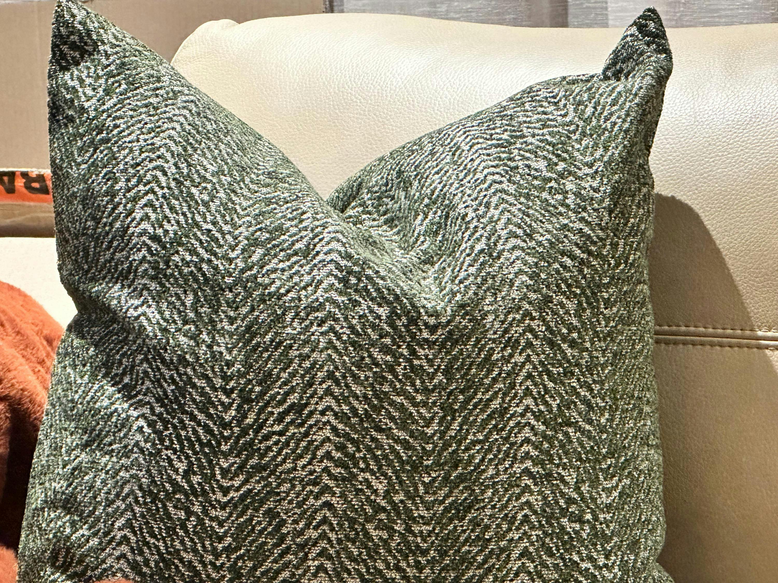 ✨ With its elegant chevron texture in rich green against a warm gray base, this pillow cover brings depth and dimension to any space.