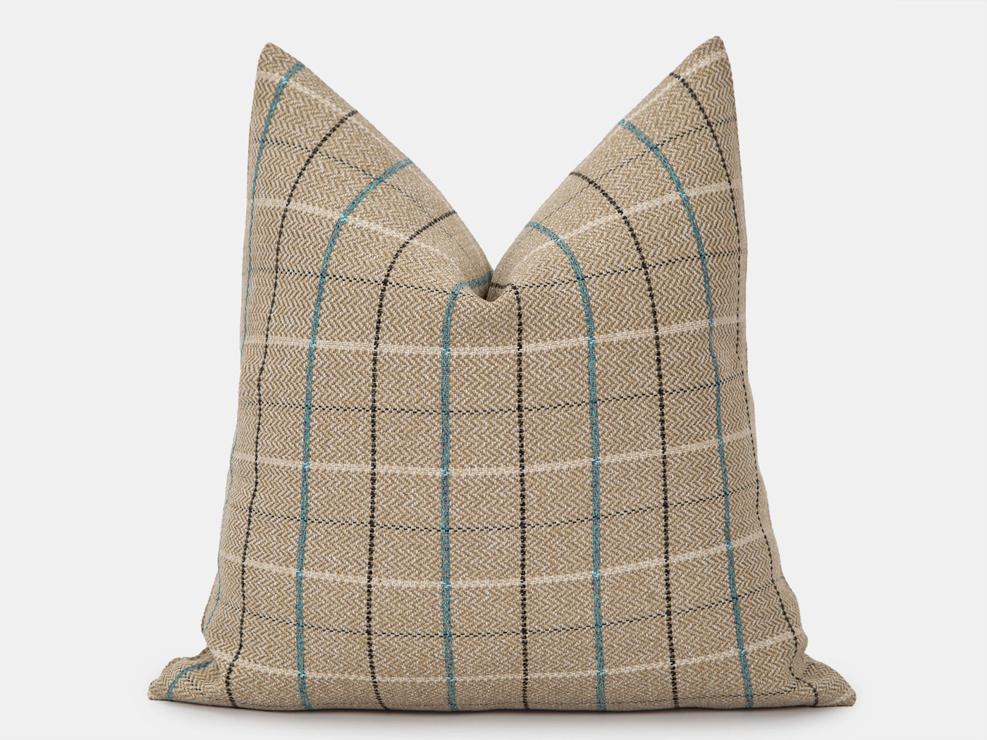 ✨ Designed with a soft plaid weave, this pillow cover combines beige with light blue accents for a relaxed classic look.