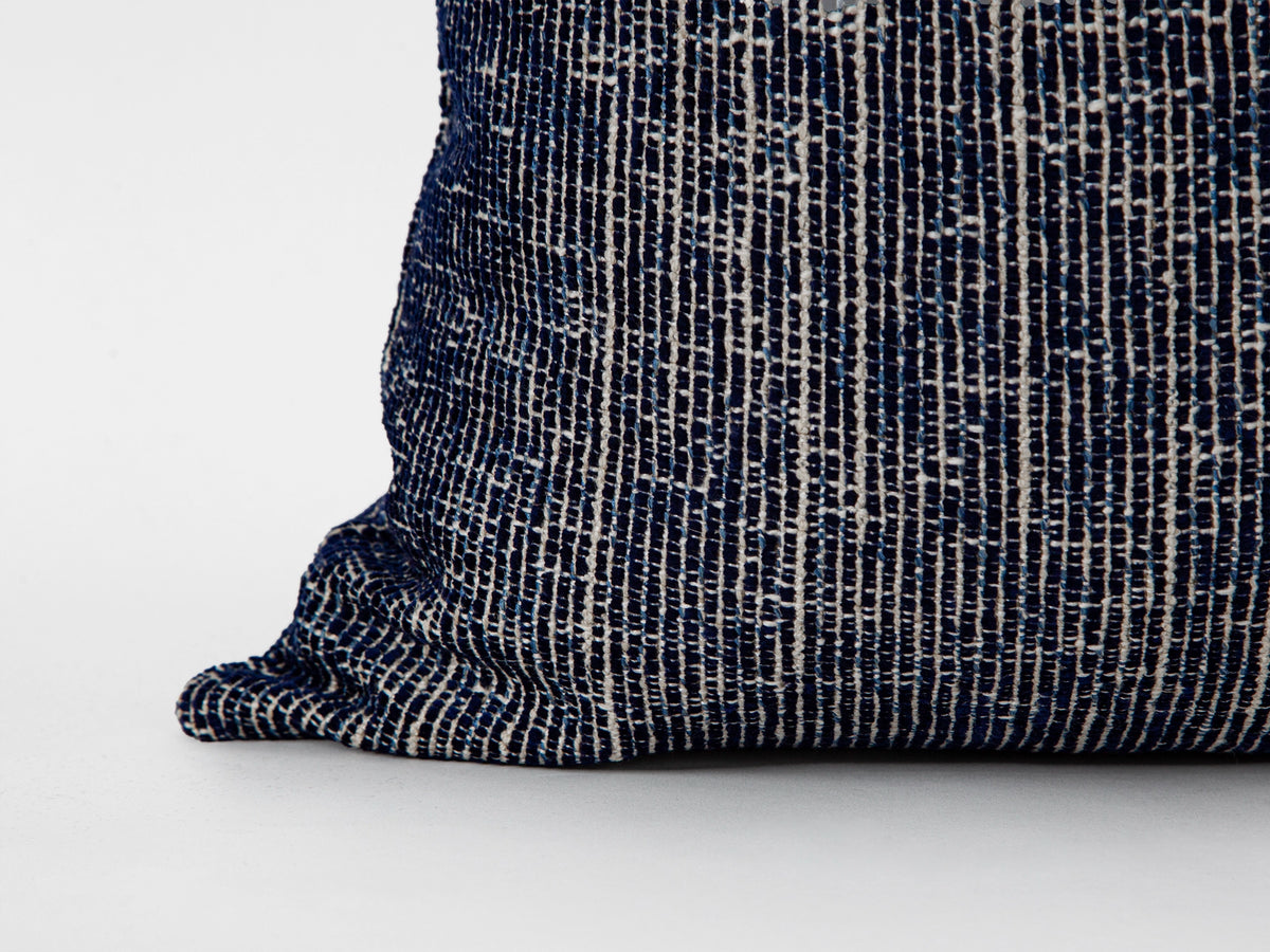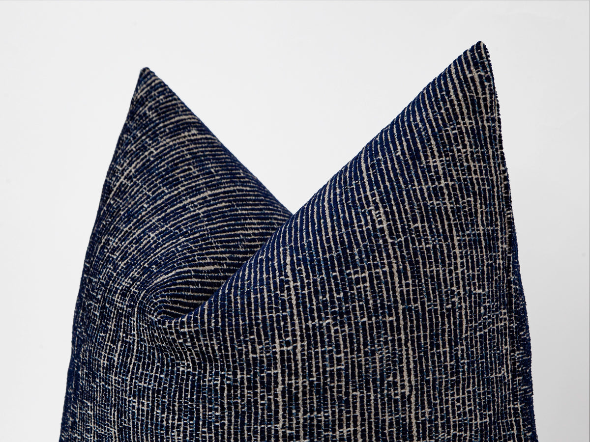 ✨ This navy pillow cover showcases a structured woven texture with subtle beige striping, creating quiet depth and definition.