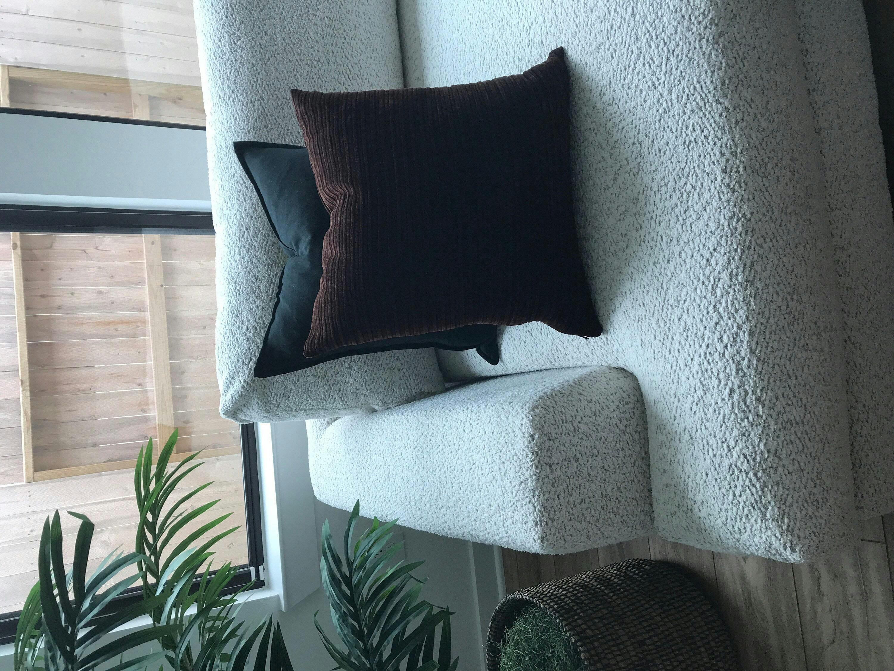 ✨ Warm and inviting, this chocolate brown pillow cover is crafted from thick, super soft corduroy with a subtle striped texture.