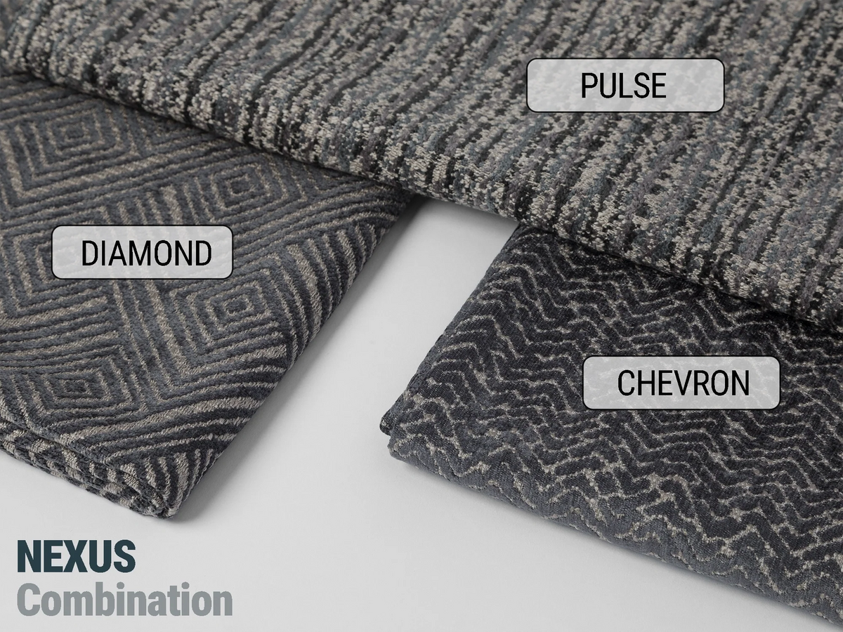 ✨ A sophisticated dark gray fabric featuring a bold chevron weave. Its rich neutral tone adds structure and balance across contemporary or classic spaces. Durable and soft, suitable for sofas, chairs, and drapery.