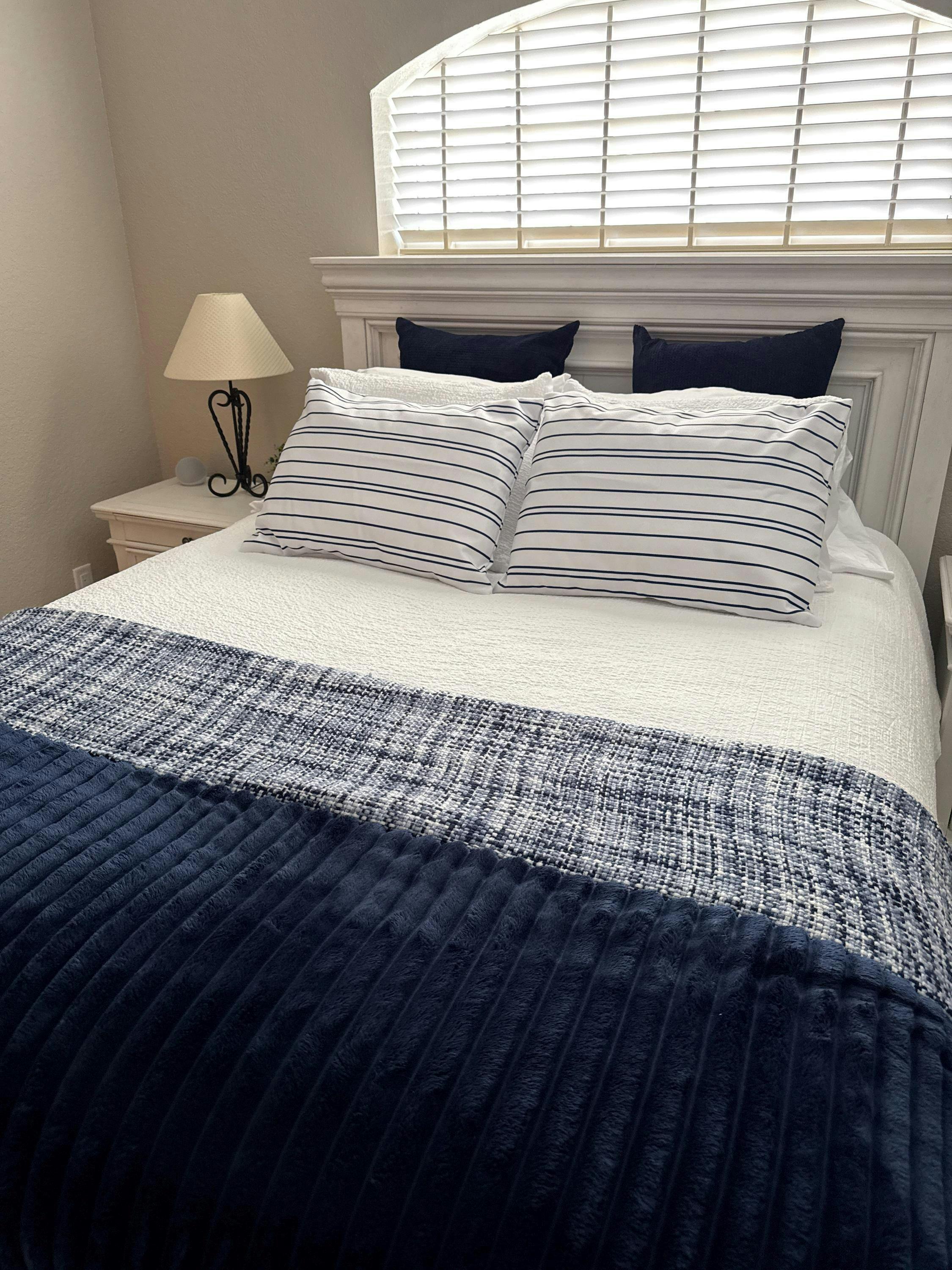 This deep navy blue pillow cover features a soft, textured chenille surface, offering depth, durability, and a refined touch to any space.