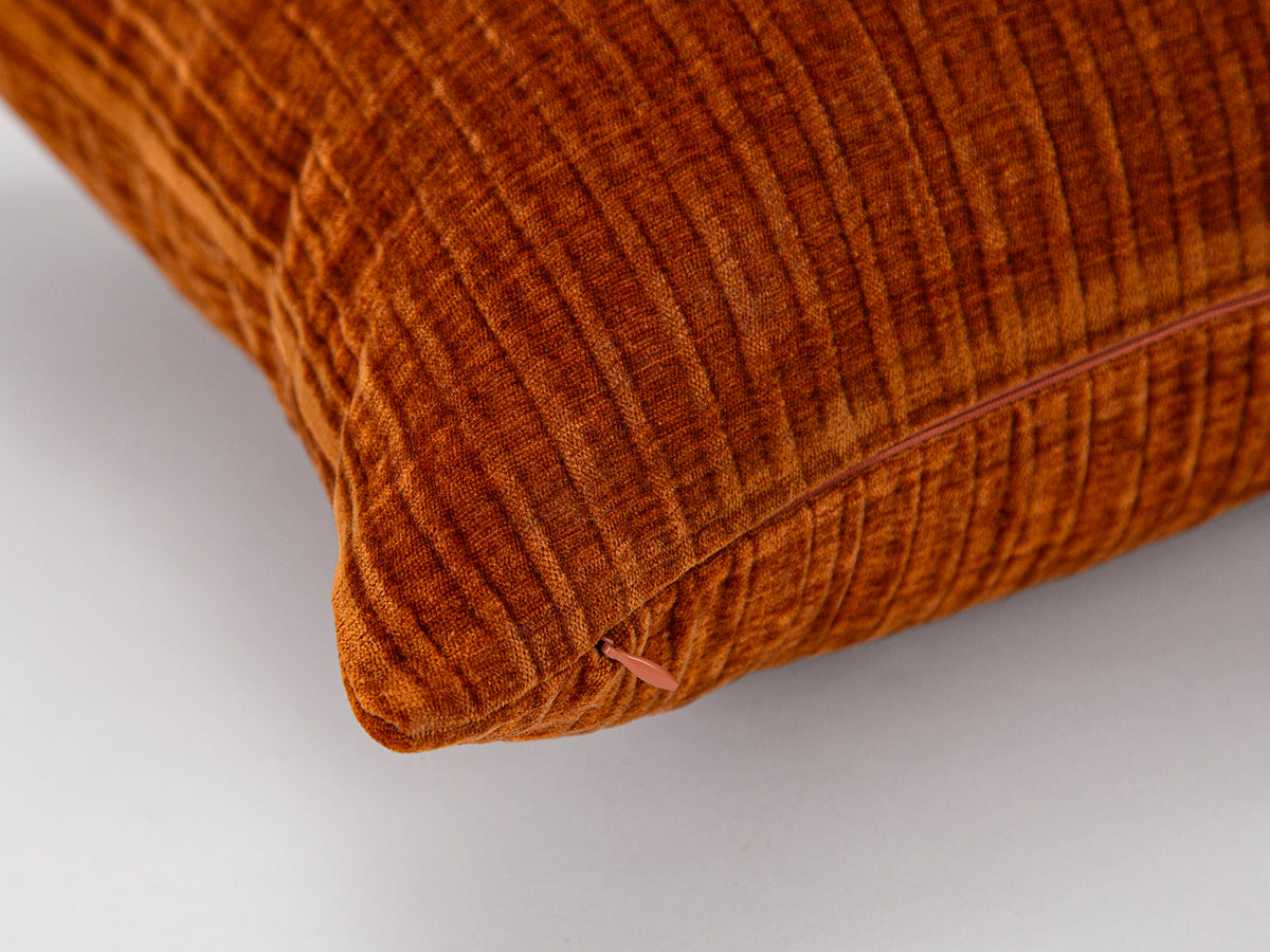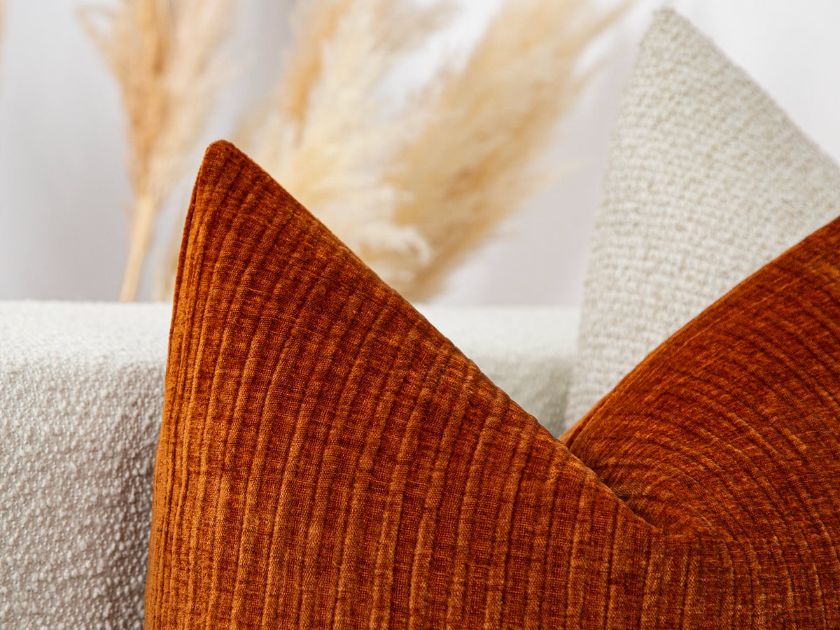 ✨ Warm and inviting, this pillow cover features a striped texture in rich burnt orange, offering a cozy yet refined look.