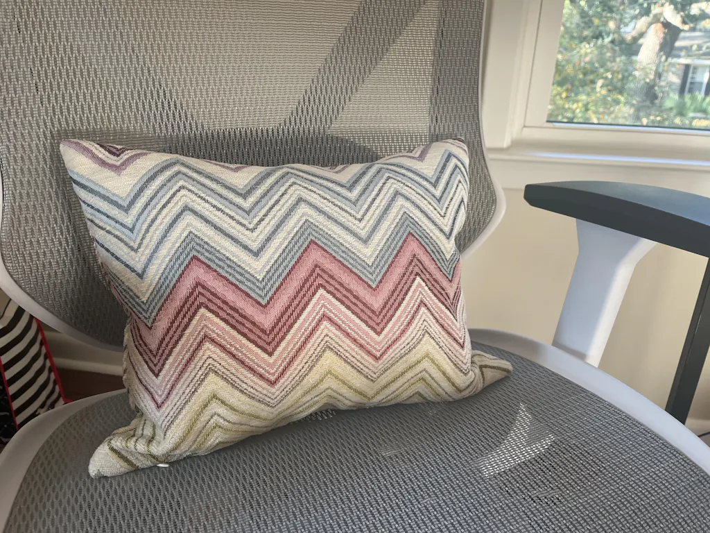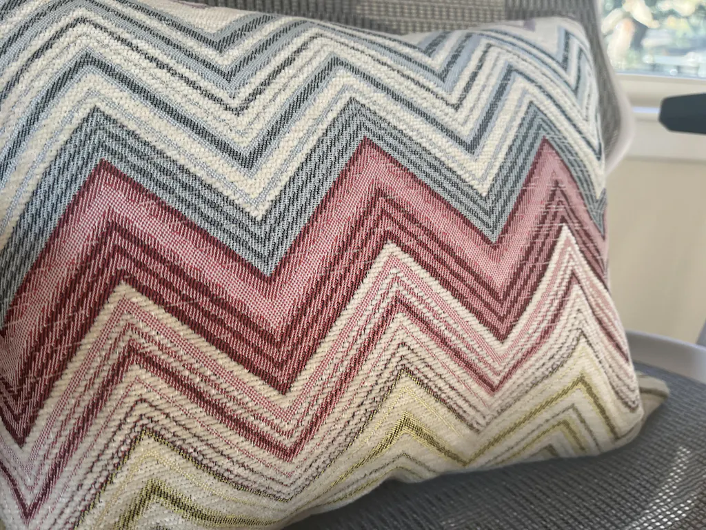 ✨ Showcasing a refined chevron pattern in tones of pink, blue, and yellow, this colorful pillow cover brings a sense of rhythm and structure to your space.