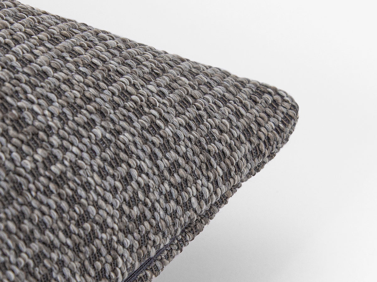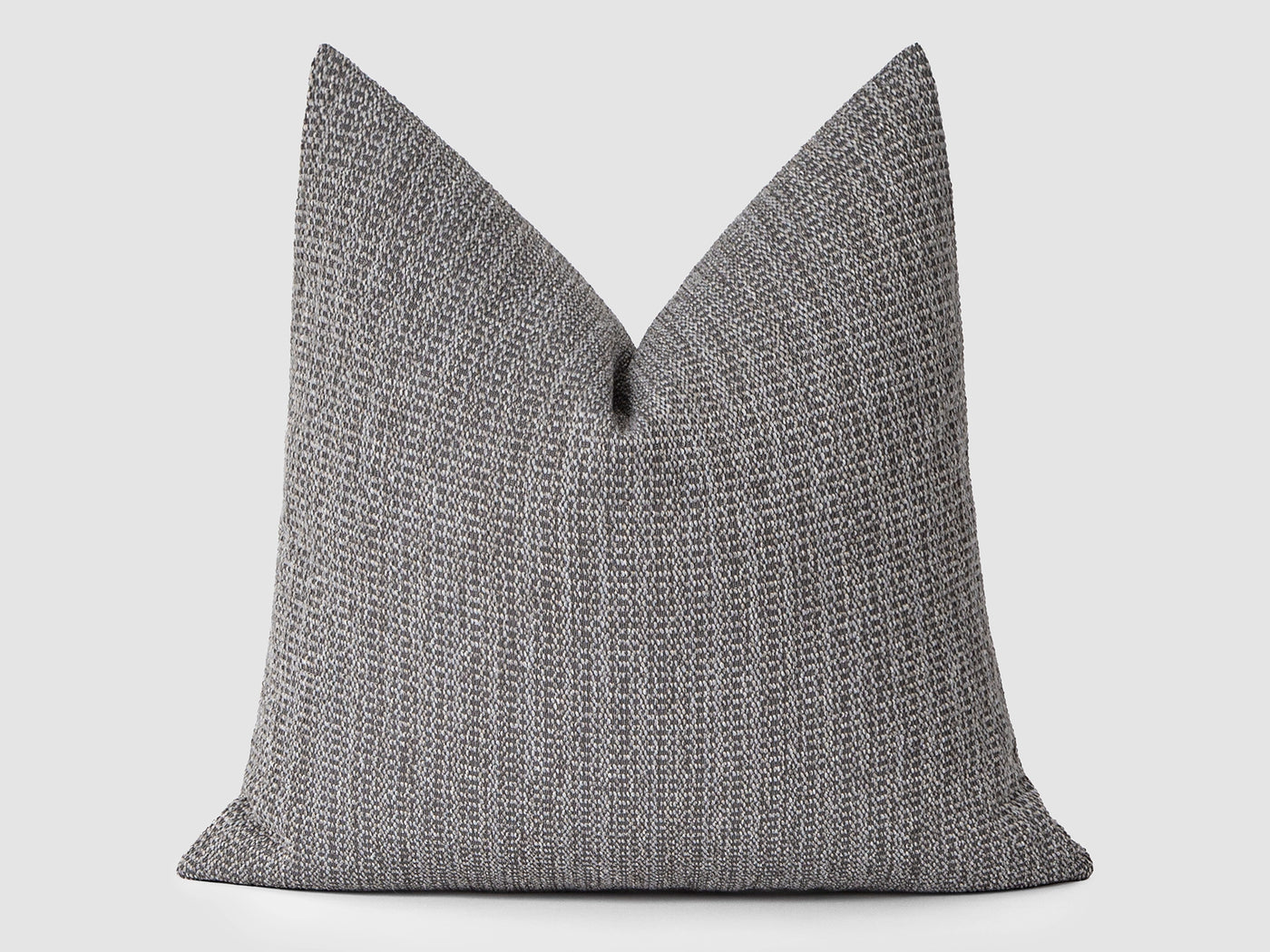 This gray pillow cover features a richly woven texture and thick, durable fabric, offering quiet depth, comfort, and an effortlessly modern look to any space.