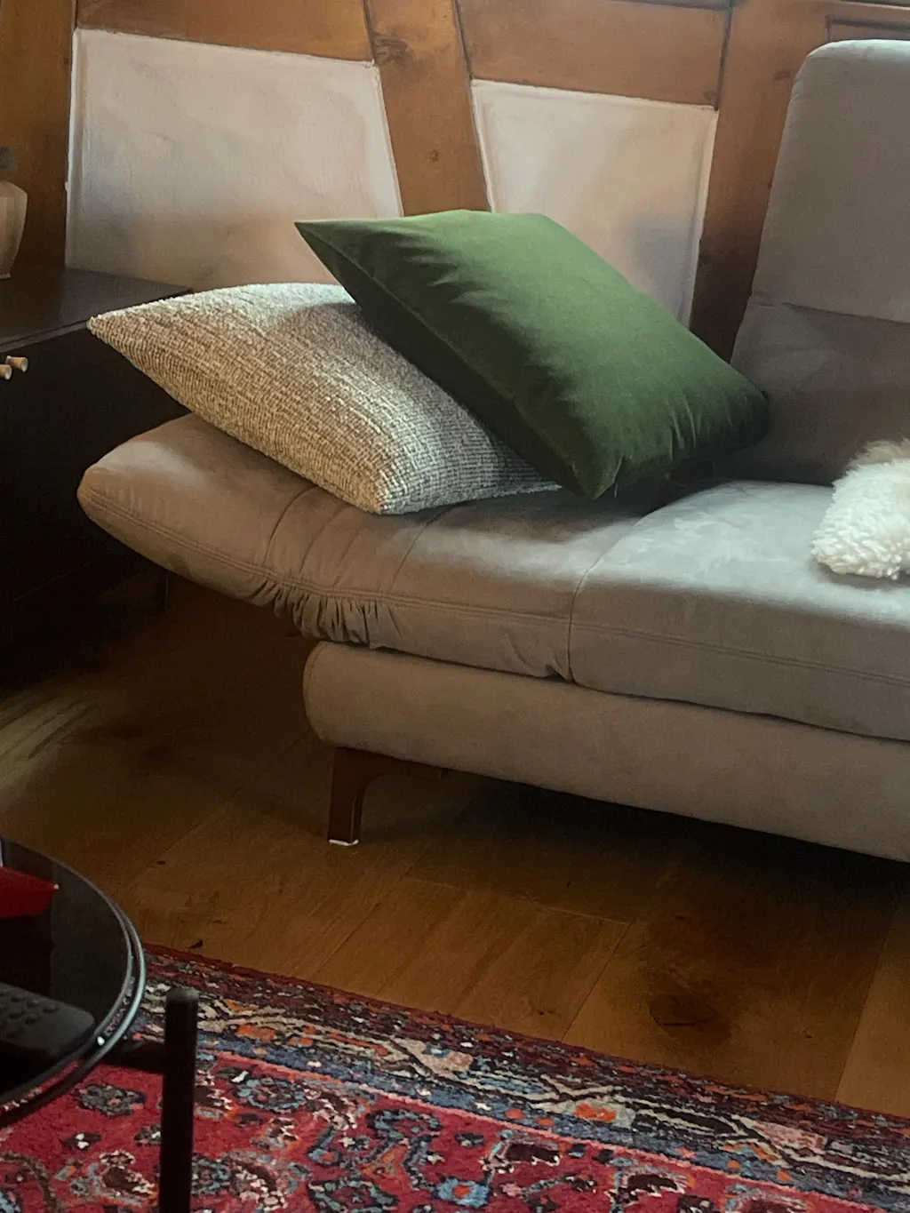 The green velvet pillow is gorgeous, is very rich and elegant.