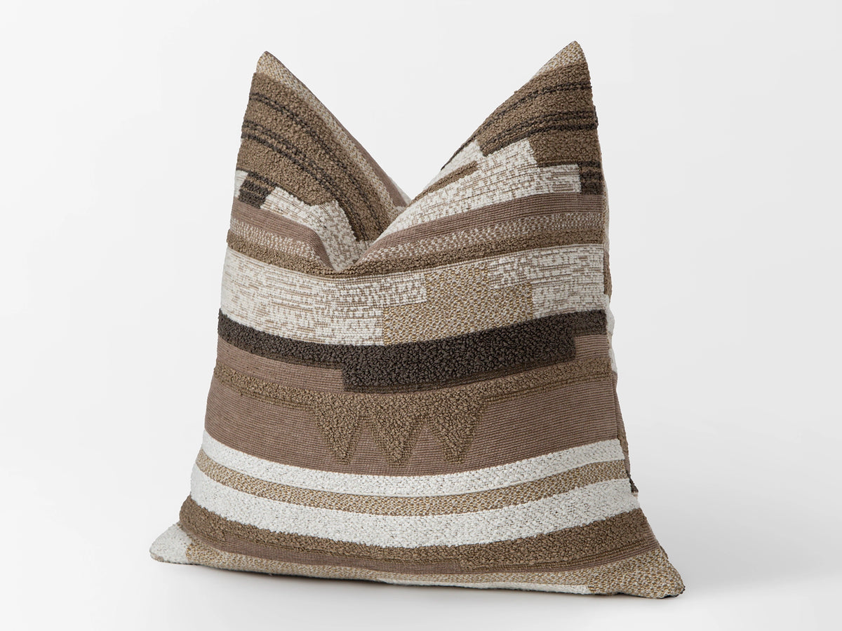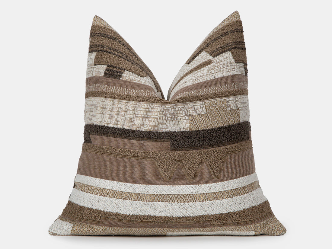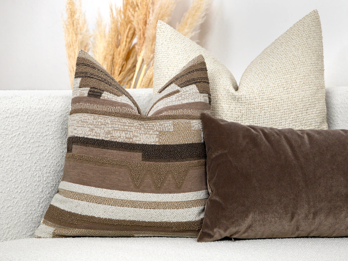 ✨ Rooted in warm, earthy tones, this pillow cover features an artisan-inspired geometric pattern in mocha, brown, beige, and cream.