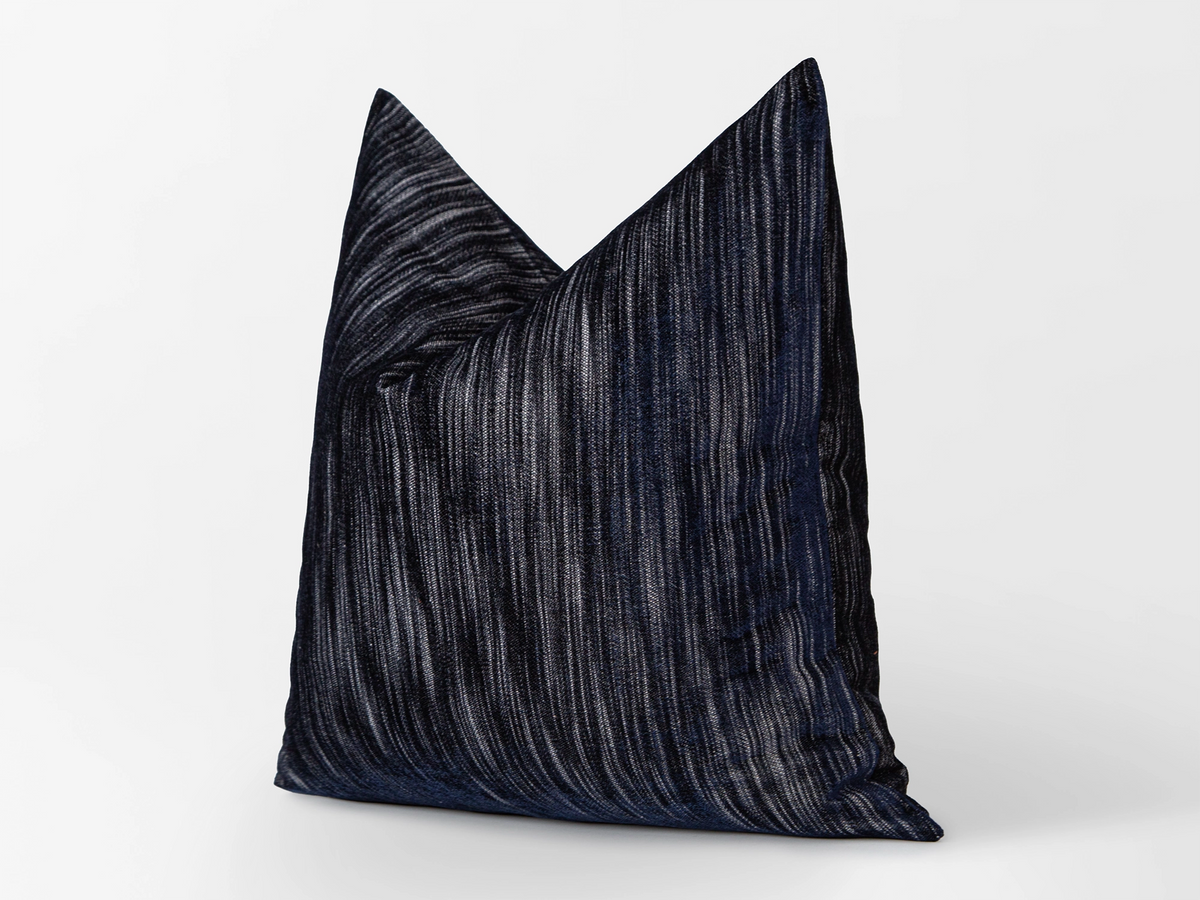 ✨ This navy blue pillow cover combines rich velvet sheen with an asymmetrical striped design, bringing depth and sophistication to any setting.